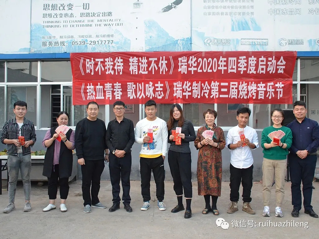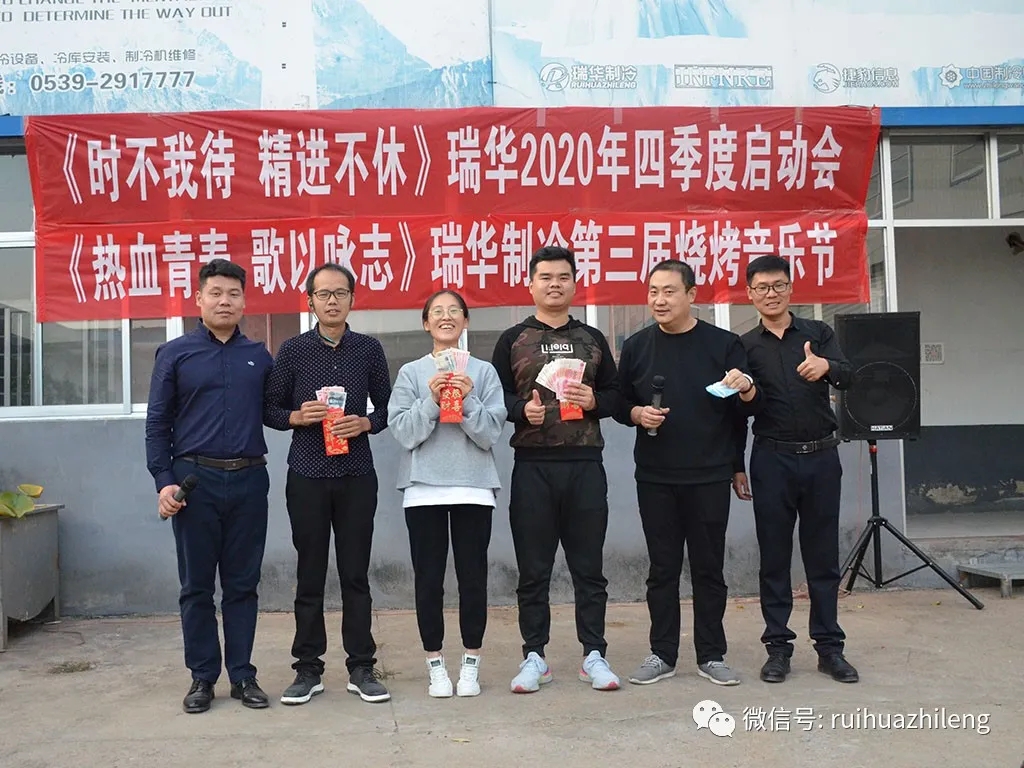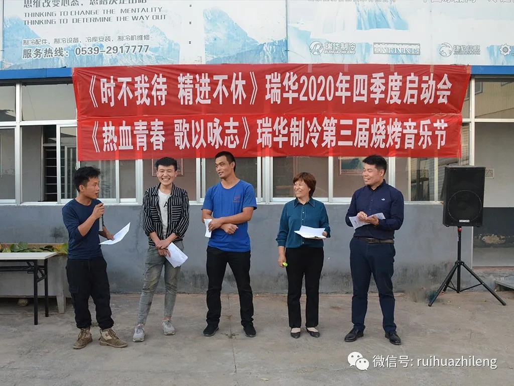 2020年10月9日,結(jié)束8天的國(guó)慶中秋長(zhǎng)假,瑞華制冷迎來(lái)了返工第一天。上午,大家忙著處理假期內(nèi)的部分工作;下午,來(lái)到倉(cāng)儲(chǔ)中心開(kāi)啟下午的活動(dòng)。分別進(jìn)行了熱身游戲、第二屆配貨比賽、四季度啟動(dòng)會(huì)與第三屆K歌燒烤音樂(lè)節(jié)活動(dòng)。大家共同度過(guò)了美好的一天,為國(guó)慶長(zhǎng)假畫上了圓滿的句號(hào),同時(shí)開(kāi)啟了四季度大幕。