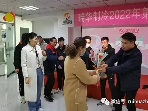 2022年3月8日,女神節(jié),瑞華制冷迎來第五屆女神節(jié)。所有男士們聚在一起,為公司所有女神送上鮮花及禮物。同時也迎來第五屆瑞華制冷巾幗紅旗手與巾幗時代先鋒評選,有三位女神獲獎,并為她們舉行頒獎儀式。