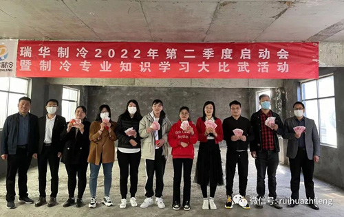 2022年4月16日,春暖花開百花齊放,山東瑞華制冷設備有限公司,在倉儲中心新落成的二期倉儲內,召開2022年度二季度啟動會暨制冷知識大比武。會議表彰了上季度工作突出的家人,對部分人員進行晉升,頒發(fā)了本月度的年功獎獎金及為過生日的家人送上生日祝福與禮物,也為二季度開了一個好頭。