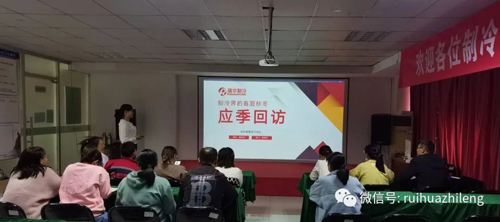 2022年10月15日,瑞華制冷組織日常內部培訓,由銷售部經(jīng)理秦曉蘭為大家培訓《制冷界的春夏秋冬——季節(jié)回訪》,主要講述制冷行業(yè)季節(jié)性變化特點,如何應對,如何分類客戶,每個季節(jié)主推哪些產品,及相應的積極性機組注意事項和回訪話術。銷售部全體參加,同時通過釘釘直播方式,便于在外出差的同事參加學習。